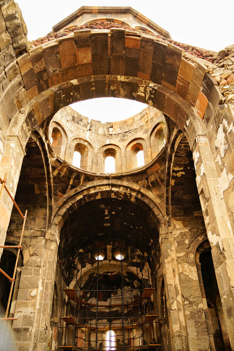 At a crucial crossroads of medieval Armenia, between some of the major historic capitals of the nation, stands what was once one of the grandest cathedrals in all of Armenia - the seventh century Talin Cathedral. Today, partly due to regional shifts of power, unfavorable border lines, and natural disasters, it stands largely forgotten. The town of Talin, one of the oldest in the province, is largely ignored as well. Walking amongst the orange and brown pillars of the cathedral today, a first impression is it’s grand size. Second is the realization that its roof is completely collapsed.