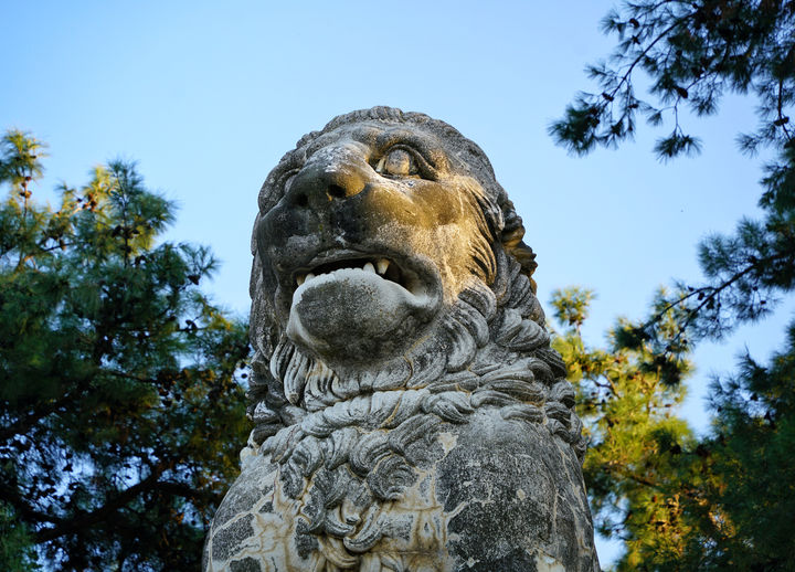 The Lion of Amphipolis, one of the most imposing monuments erected along the ancient highway, seen just outside of Amphipolis.