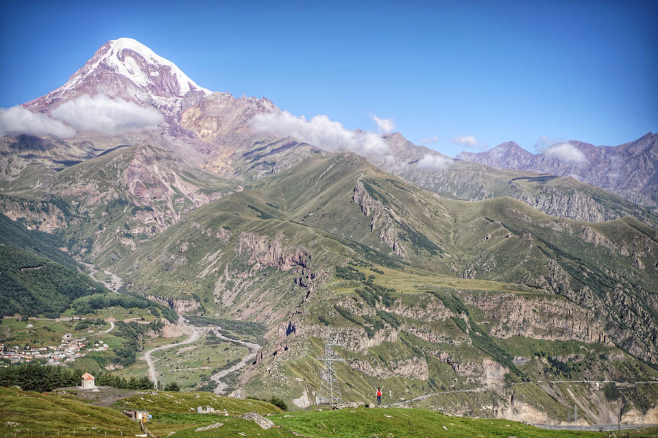 Kazbegi, and the nearby town of Stepantsminda, lies on the border of Russia. A 4 hour minivan ride from Tbilisi brings you to these majestic mountains.